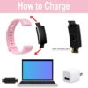 24. A This is no need for a charger.Here are some tips for charging:1. Please remove both two sides of the band from the host, and you will see the metal pins, please plug this side into the USB port. (the metal pins of tracker should be in contact with the pins of USB charger).2. If the watch screen charging icon is not on when inserting the device for charging, please check and turn the direction of the device's charging plug to the correct way, or try other sockets.Warm tips: In order to get a longer lifespan, we recommend you pull out the host from the socket at once after fully charged. It takes about 1~2 hours to get the host fully charged.